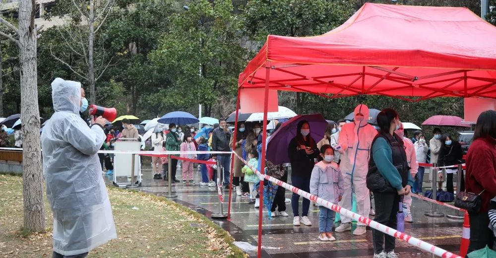 在銀杏園17號核酸檢測點現(xiàn)場,集團36名志愿者們分工明確,協(xié)助做好體溫檢測、信息采集、秩序維護等工作。大家嚴格落實戴口罩、三米線、一米間隔等防疫規(guī)定,溫馨提示群眾“提前打開健康碼、手機屏幕調最亮”等,耐心指導幫助群眾亮碼掃碼、登記信息,有效保障核酸檢測高效有序進行。