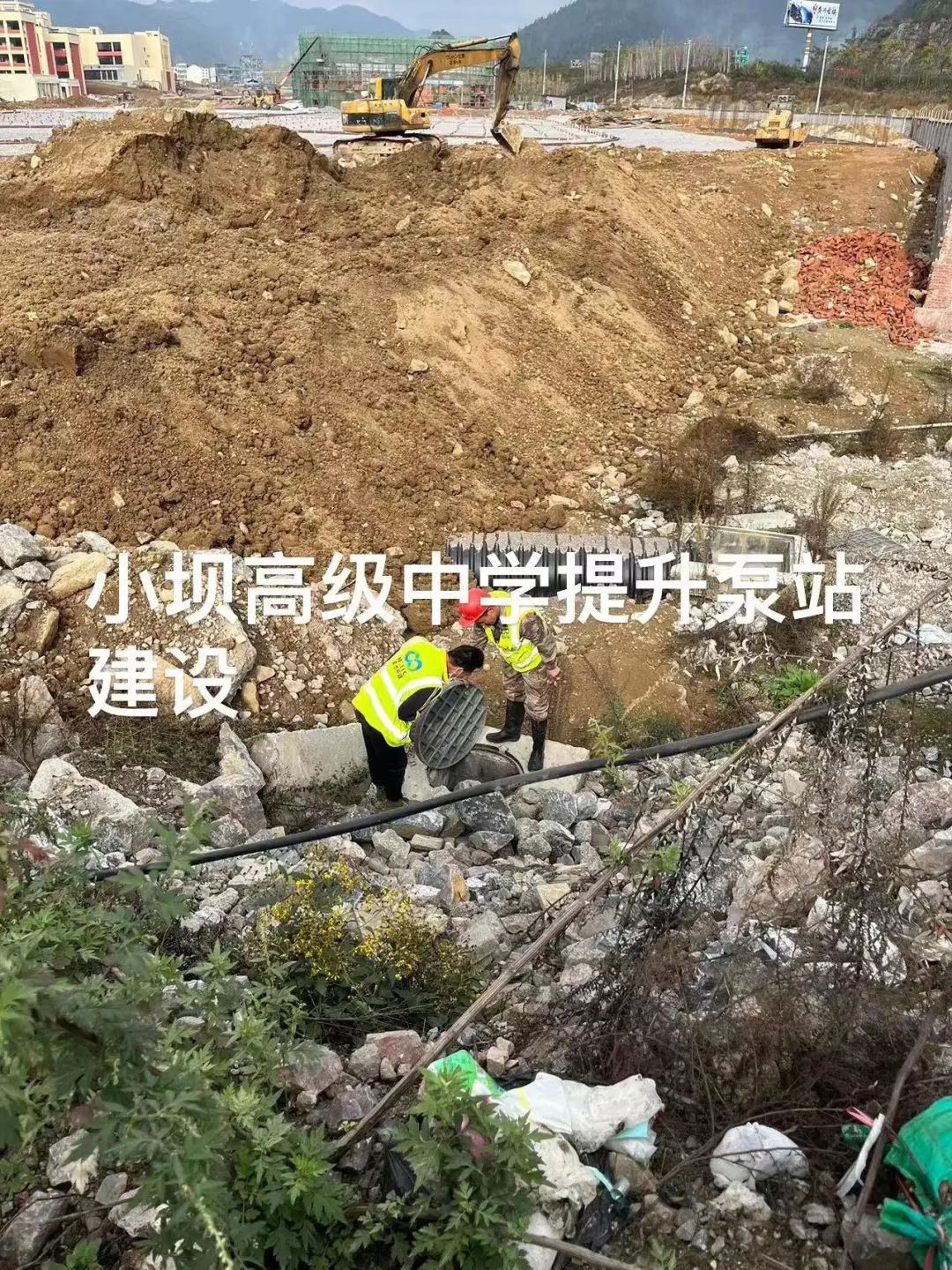 美池環建設公司現場研究廢水(污水)提排設施設備安裝工作