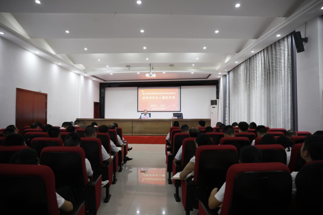 【7月20訊 田堃靈】 “國企領(lǐng)域是腐敗易發(fā)多發(fā)的重點(diǎn)領(lǐng)域,所以我們要經(jīng)常用黨章黨規(guī)為自己的行為敲響警鐘.......”7月20日,酉州實(shí)業(yè)集團(tuán)邀請(qǐng)縣紀(jì)委監(jiān)委派駐財(cái)政局紀(jì)檢監(jiān)察組組長(zhǎng)張軍開展清廉國企專題黨課。集團(tuán)班子成員、全體黨員、中層副職以上人員、各部室(子公司)關(guān)鍵崗位和風(fēng)險(xiǎn)崗位相關(guān)人員共計(jì)75人濟(jì)濟(jì)一堂,接受“廉潔洗禮”。